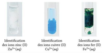 Ajouter quelques gouttes de solution de soude (hydroxyde de sodium ( \(Na{^{+}}\) + \(HO{^{-}}\)).