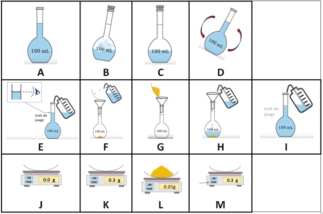 7. L'une des étape, « E » n'est pas décrite correctement pour ajuster le volume de solution au trait de jauge.